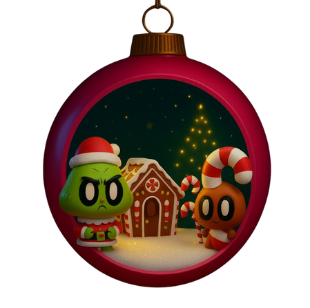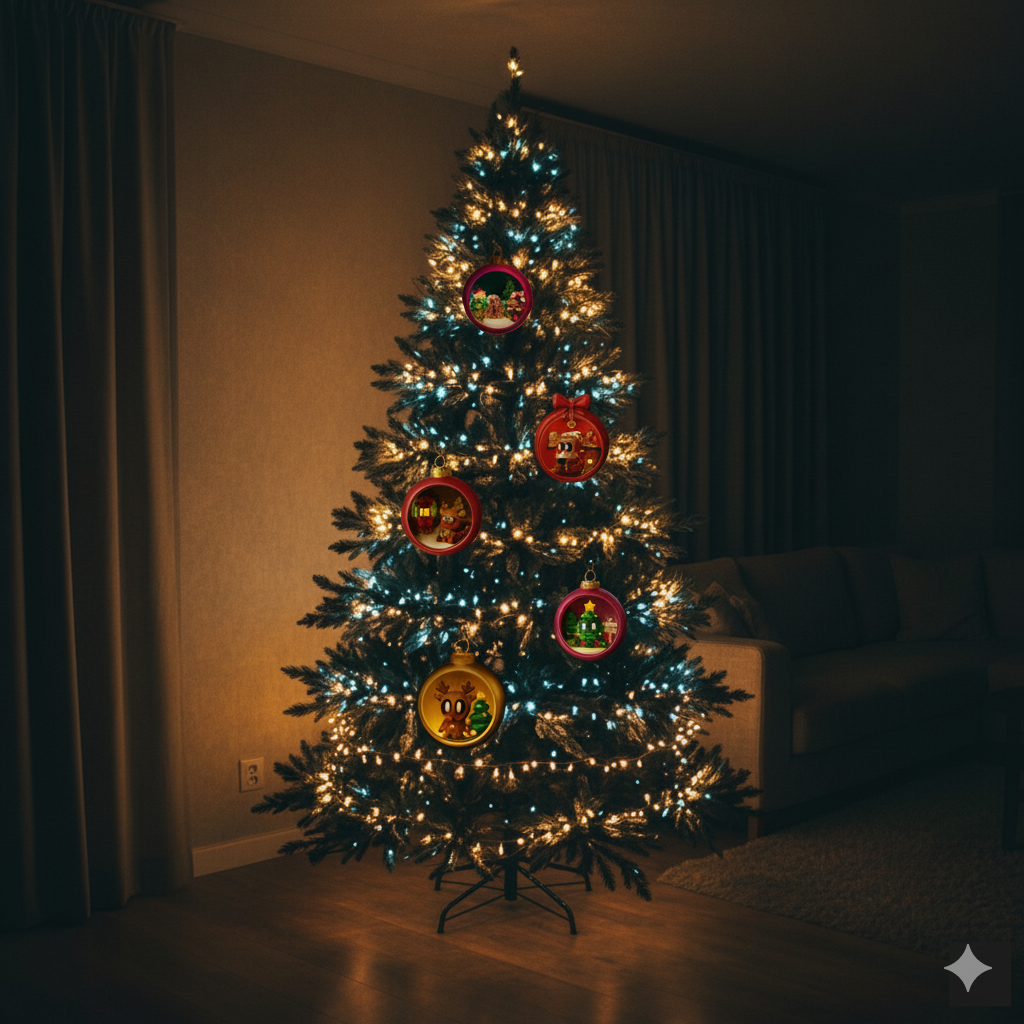 Dentro de cada Bolinha Encantada existe um pequeno universo natalino — com os nossos Bitz em versões especiais, cercados por árvores, luzes, presentes e todo o clima acolhedor dessa época.