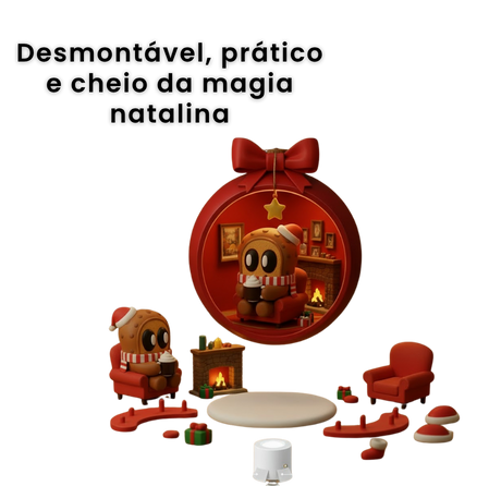 Cada esfera é montável e desmontável, perfeita para quem ama praticidade sem abrir mão da beleza. Monte o cenário, encaixe os elementos e crie o seu próprio mini mundo natalino — depois, guarde com facilidade até o próximo ano.